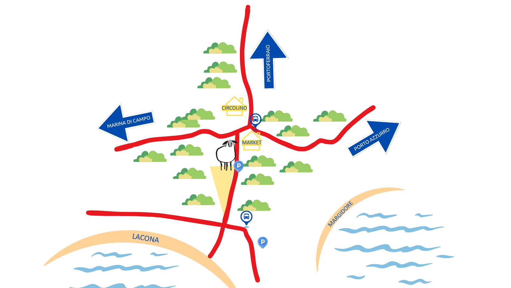 Ci troviamo a pochi passi dalla spiaggia di Lacona, una delle più belle e ampie dell’Elba, ideale per una passeggiata sulla sabbia dorata o un bagno rinfrescante. La nostra fattoria è immersa nel verde, in una posizione tranquilla ma facilmente raggiungibile.