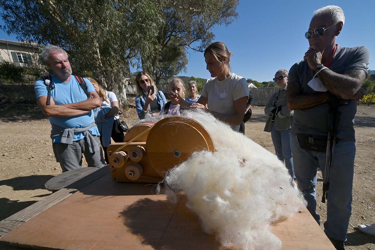 laboratorio teorico pratico di trasformazione della lana, a partire dal vello, selezione della lana, cardatura ed è possibile provare a creare oggetti con il feltro.